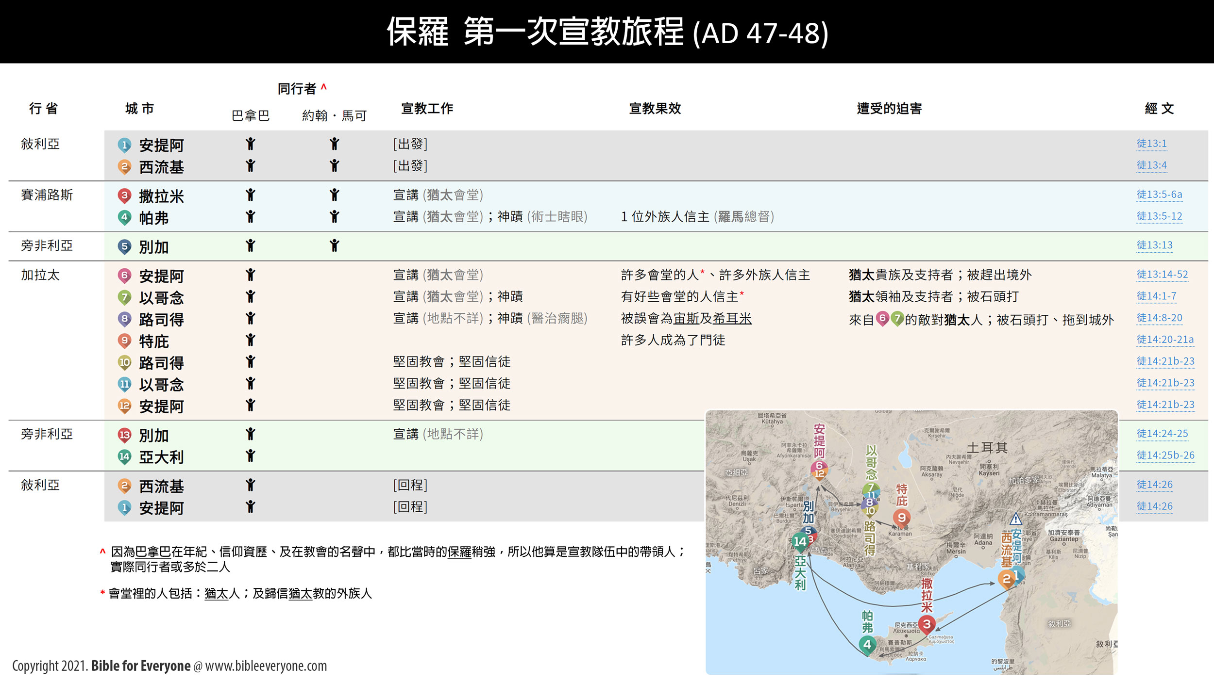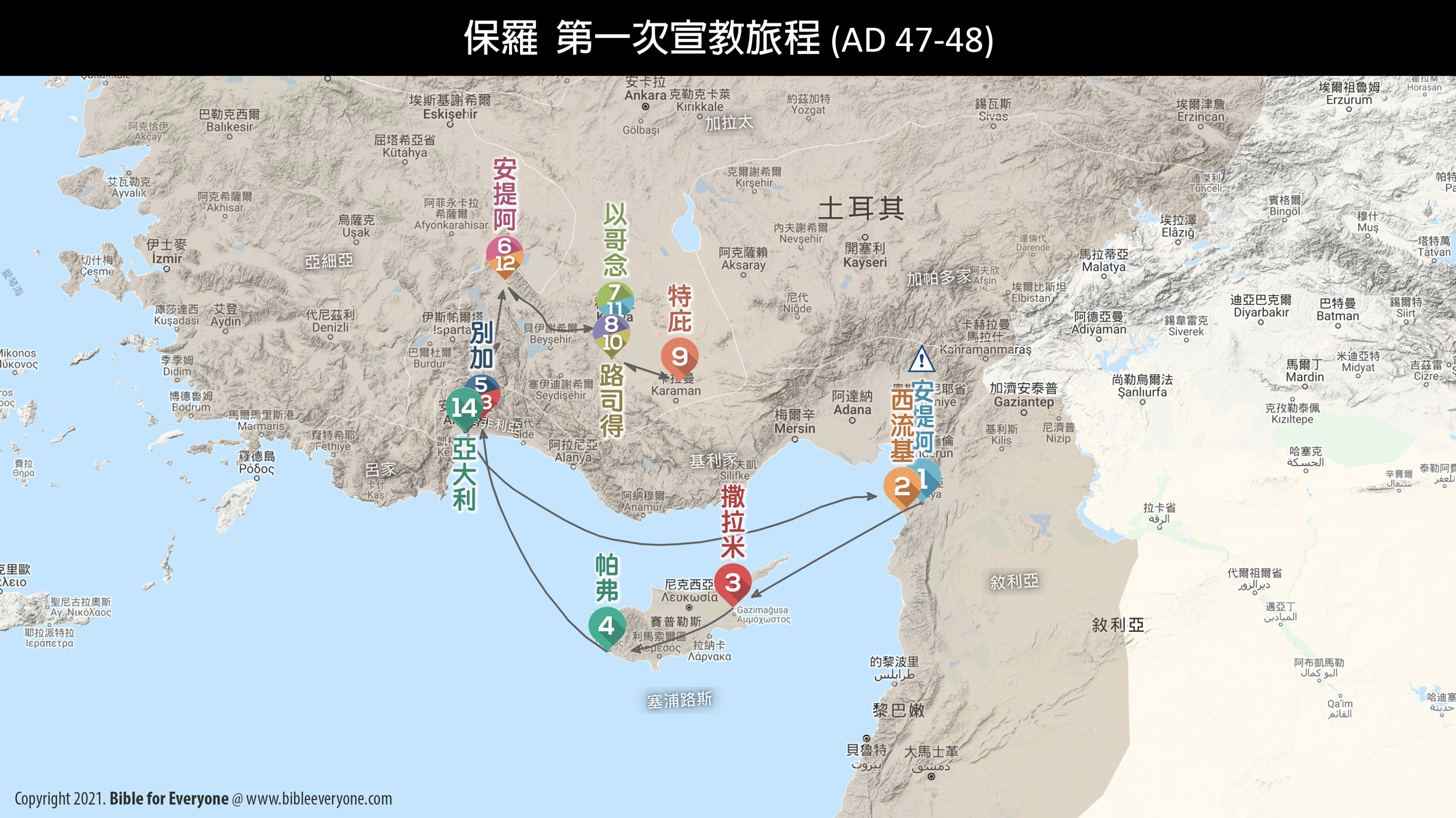 兩人經過彼西底,來到旁非利亞,14:24 在別加講完道,...14:25a |